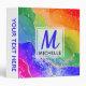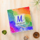 Bright Rainbow & Gold Faux Glitter Agate Monogram 3 Ring Binder