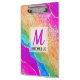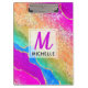 Bright Rainbow & Gold Faux Glitter Agate Monogram Clipboard