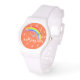 Colorful rainbow graphic art kids girls watch with bright orange background. Customise with your name currently reads Missy.