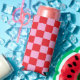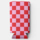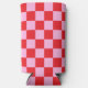 Bright Red and Light Pink Checkered Seltzer Can Cooler