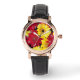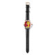 A fun colorful watch face adorned with colorful yellow and red Gerber daisy photographs over a black background with the vintage leather band. The white numbers are a template which you can remove/clear. You can also transfer this design where it fits appropriately to another product in the scroll bar such as the pocket watch or wall clock.
