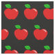 A fun and fruity pattern of shiny red apples with a leaf.
