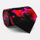 Bright red flower blossoms on black tie