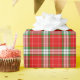 Wrapping paper with a Christmas plaid in bright red, green, and white. Spice up your Christmas packages with this colorful wrapping paper.