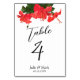 Wedding Table Number Card with Bright Red Hibiscus Flower