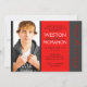 Bright Red & Pinstripe Grey Photo Graduation Invitation