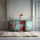 I had a small table I had just painted and wanted to add a bit of a romantic touch. This paper decoupaged on the top was just what it needed it always elicits oohs and aahs.