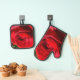 Bright Red Rose Flower Beautiful Floral Oven Mitt & Pot Holder Set