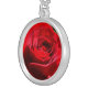 Bright Red Rose Flower Beautiful Floral Silver Plated Necklace