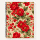 Brilliant red roses and illegible text from a junk journal page create a beautiful, vintage-looking spiral notebook that's perfect for home, school, or the office.