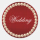 Wording WEDDING on bright red beehive-like geometric pattern background, surrounded by string of white pearls. To customize this design, please change the text: Save the Date, Bridal Shower" From the Library of, Thank you, Love, etc, or your monogram letter.