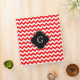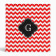 Bright Red and White Chevron ZigZag Pattern, Black Quatrefoil Label Monogram