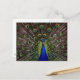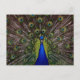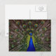 Vibrant, bright, regal peacock bird with colorful feathers elegant art nouveau nature photo postcard.