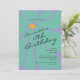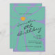 An 18th birthday party invitation with retro style in bright colors with a large daisy in bright aqua and mustard yellow over a light purple background. Coordinating retro styled text spells out the details of your party in retro era style. Personalize the text template with your party details. This invitation may be ordered in both printed and instant download digital formats, making it easy to send electronically to your invited guests.