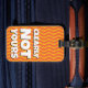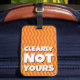 Spot your travel bag with this retro bright funny luggage tag saying with the words 'clearly not yours' in a modern bold typography on a funky pattern of wavy lines in orange and yellow background. This is a bright and unique luggage identifier so you never loose your bag. You can change the color of the background by clicking on the customize it button.