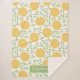 Stylish and fun, this sherpa blanket will keep you and your family warm this winter while you snuggle on the couch together. The design features bright yellow sunflowers with bright green leaves in a pattern over a white background. It also features a green tag with a white border with white text that can be customized to fit anyone's name. Great gift for gardeners, nature lovers, and sports moms. Great gift for Christmas or any birthday during the cold months.
