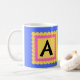 Sip in style with this cheerful personalized monogram mug! Featuring a bold black initial framed in playful scalloped borders of yellow and pink against a bright blue background, this design is both fun and eye-catching. Perfect as a thoughtful gift for teachers, coworkers, friends, or yourself.