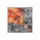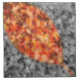 A selectively colored autumn photograph of fallen crepe myrtle leaves, with a gold-framed leaf shape of bright red, orange, and yellow against a black and white background.