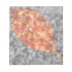 A selectively colored autumn photograph of fallen crepe myrtle leaves, with a gold-framed leaf shape of bright red, orange, and yellow against a black and white background.