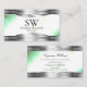 Bright Shimmery Mint with Silver Borders Monogram Business Card
