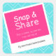 Customizable snap and share social media stickers. Place them on your products and help promote your business. In fun bright turquoise and hot pink colors.