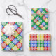 Red Green Yellow and Blue. Set of Three Coordinating Primary Colors Snowflake Wrapping Papers.