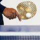 Bright sparkling golden sequin glitters disco ball Ping-Pong paddle