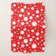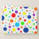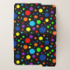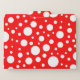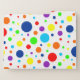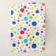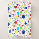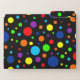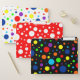Three bright spot patterns with large random spots. These are rainbow spots on white, white spots on bright red and rainbow spots on a black background.