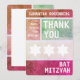 Bright colors. A clean, simple design. Large type. The Star of David... prominently displayed in a row. This modern and unique Bat Mitzvah thank you note features a complementary palette with each section defined by a unique background color. All of the printed information can be customized with your daughter’s name…just fill in the fields!