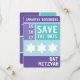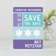 Bright colors. A clean, simple design. Large type. The Star of David... prominently displayed in a row. This modern and unique Bat Mitzvah save the date invitation features a complementary palette with each section defined by a unique background color. All of the printed information can be customized with your daughter’s name and the event date…just fill in the fields!