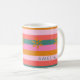 Cozy Christmas Bright Stripe and snowflake custom name coffee mug. Perfect holiday gift for tea, coffee or hot chocolate on cold winter nights. Get ready to celebrate the season in style with this fun and cheerful striped mug with unexpected Christmas colors—pink, teal green, golden yellow, and coral. A modern, colorful stripe pattern adds extra flair. Makes a perfect Christmas gift.