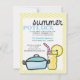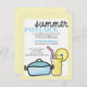 This modern and festive invitation stylishly invites your friends and family for a fun potluck party celebrating the summer season. Illustrated by a pan and a glass of lemonade, framed by a zig zag yellow and white pattern. Change the model text by entering your party information. Font size, style and color can be easily changed by clicking on the orange "customize it" button.