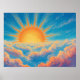 A dramatic artwork featuring heavy clouds with a bright half sun glowing through the sky. Expressive brushstrokes and bold colors create a luminous, emotional scene full of depth and atmosphere.