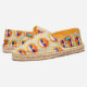 This design features a bright golden Sun wearing shades, printed on canvas Afridrilles shoes. The shoes are handmade in Kenya by Ubuntu, and are available in both men's and women's sizes.