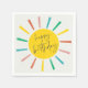 A Bright Sun Script Kids Birthday Party Napkins with rainbow sun and modern script happy birthday. Click the edit button to customize this design with your details.