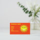 This bright and bold business card is suitable for lots of different industries, especially those catering for children and holidaymakers. The bright yellow sun appears on the front right and back middle of the business card. The bold yellow text is customizable to allow you to add your own business details and delete any fields not relevant to your business. For additional customization just click on the "customise it" button.