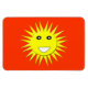 This awesome magnet features a bright smiling yellow sun that is guaranteed to make you smile even on the most miserable days. It is on a red-hot background and has a big white smiley mouth and huge black eyes with white pupils.