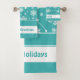 Bright Teal Blue Winter White Snowflake Pattern Bath Towel Set