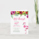 Set the tone for a fun, summery 40th birthday celebration with this cute tropical "Let's Flamingle" folded party invitation! Featuring a bright, tropical watercolor floral drop of colorful hibiscus, bottle brush, bright bird of paradise, and palm foliage, followed by "Let's Flamingle" in flamingo pink. Your personal message appears inside, and the card is personalized on the front in text of matching pink and green. Copyright Elegant Invites, all rights reserved.