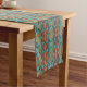 Bright Turquoise Teal Aqua Blue Orange Tribal Art Short Table Runner