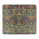 This design features a fabric pattern created by British artist William Morris (1834–1896), who was a founder of the Arts and Crafts movement. It shows green foliage on a blue background with red and pink touches of colour. There are visible sunflower, violet and columbine flowers. The original pattern was first designed in 1883.