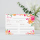 Bright Watercolor Pink Orange Floral Bridal Recipe Invitation