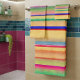 A stylish and vibrant addition to any bathroom. These towels are both soft and absorbent, making them perfect for drying off after a shower or bath. The set includes a bath towel, hand towel, and washcloth, each featuring a colourful watercolour stripe design that will add a pop of colour to your bathroom decor.