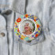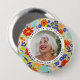 Celebrate a loved family member or friend with this round photograph button featuring a whimsical and bright painterly wild flower pattern on warm creamy ivory with easily edited text to memorialize a very special person or moment in life.
