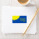 Bright yellow and blue mod circle label