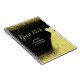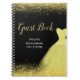 A beautiful bright yellow themed elegant watercolor dress gown on a black background with faux glitter at the top and bottom of the guest book.