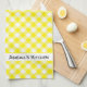 Ms. Monogram's traditional yellow gingham pattern kitchen towel design features the well-known buffalo check pattern with a modern twist -- it's personalized with the recipient's name. Kitchen towels make wonderful additions to house warming gift baskets. #YellowKitchen #Yellow #Monogram