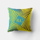 Bright Yellow Green Jungle Style Pattern Monogram Throw Pillow