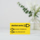 A bright yellow cover features 3 power plugs that contain your card info. Over at the top lies the business name with your prestigious name and contact details just underneath.