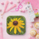 These party ready paper plates are designed with my close-up photograph of a single bright yellow Rudbeckia (Black Eyed Susan) flower bloom over a background of garden greenery.